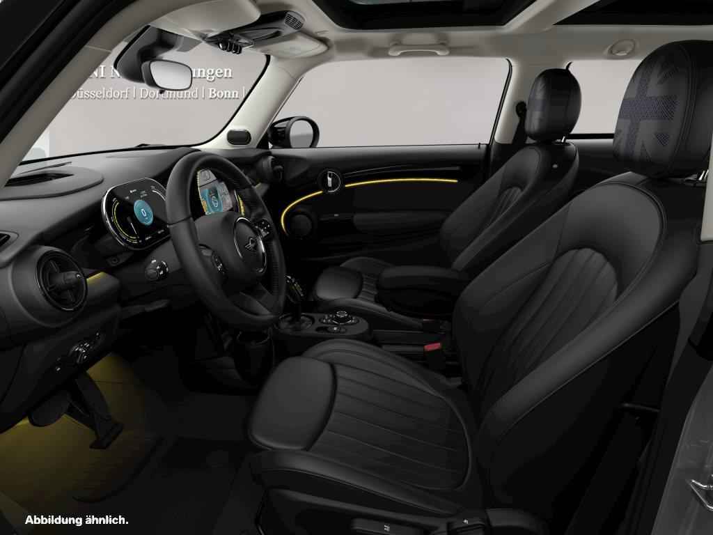 Zeer complete en luxe uitgevoerde MINI Electric in de kleur Moonwalk Grey metallic met zwart lederen MINI Yours Lounge interieur. Voorzien van automatische transmissie en voorwielaandrijving.